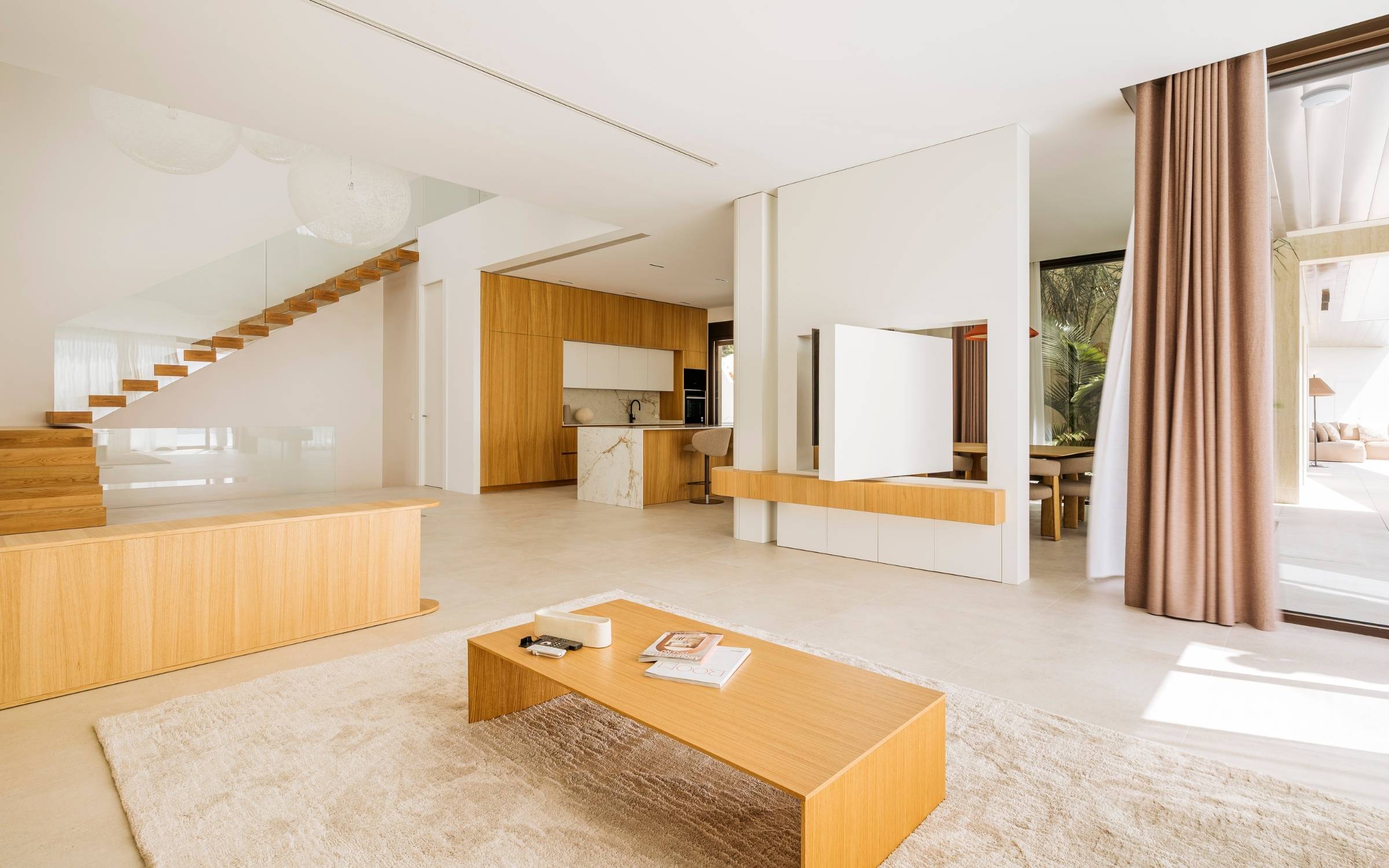 Un 𝗴𝗿𝗮𝗻 𝗹𝗮𝘇𝗼 𝗯𝗹𝗮𝗻𝗰𝗼 𝗰𝗲𝗿𝗮́𝗺𝗶𝗰𝗼, envuelve todo el perímetro de la parcela y sigue su recorrido levantándose en altura y generando los espacios más emblemáticos de esta bonita villa.
